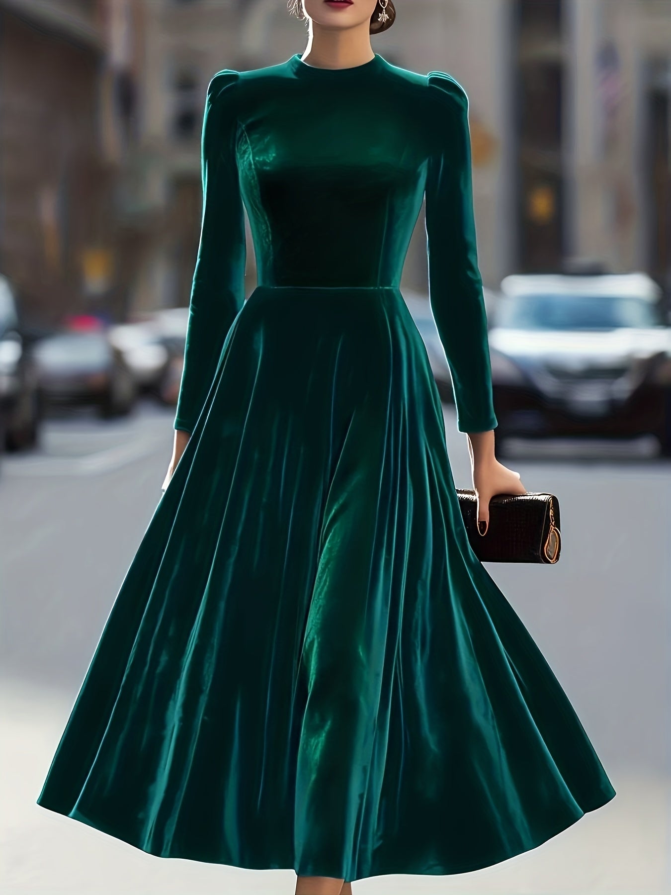Imagine a dress that captures grace, refinement, and timeless elegance the moment you slip it on — a silhouette that moves with quiet sophistication and elevates every step. Sienna features a beautifully structured bodice, soft shoulder detailing, and a flowing velvet-inspired skirt that drapes with cinematic charm. Perfect for dinners, special events, or any occasion where you want to feel unforgettable, it blends classic beauty with modern poise.