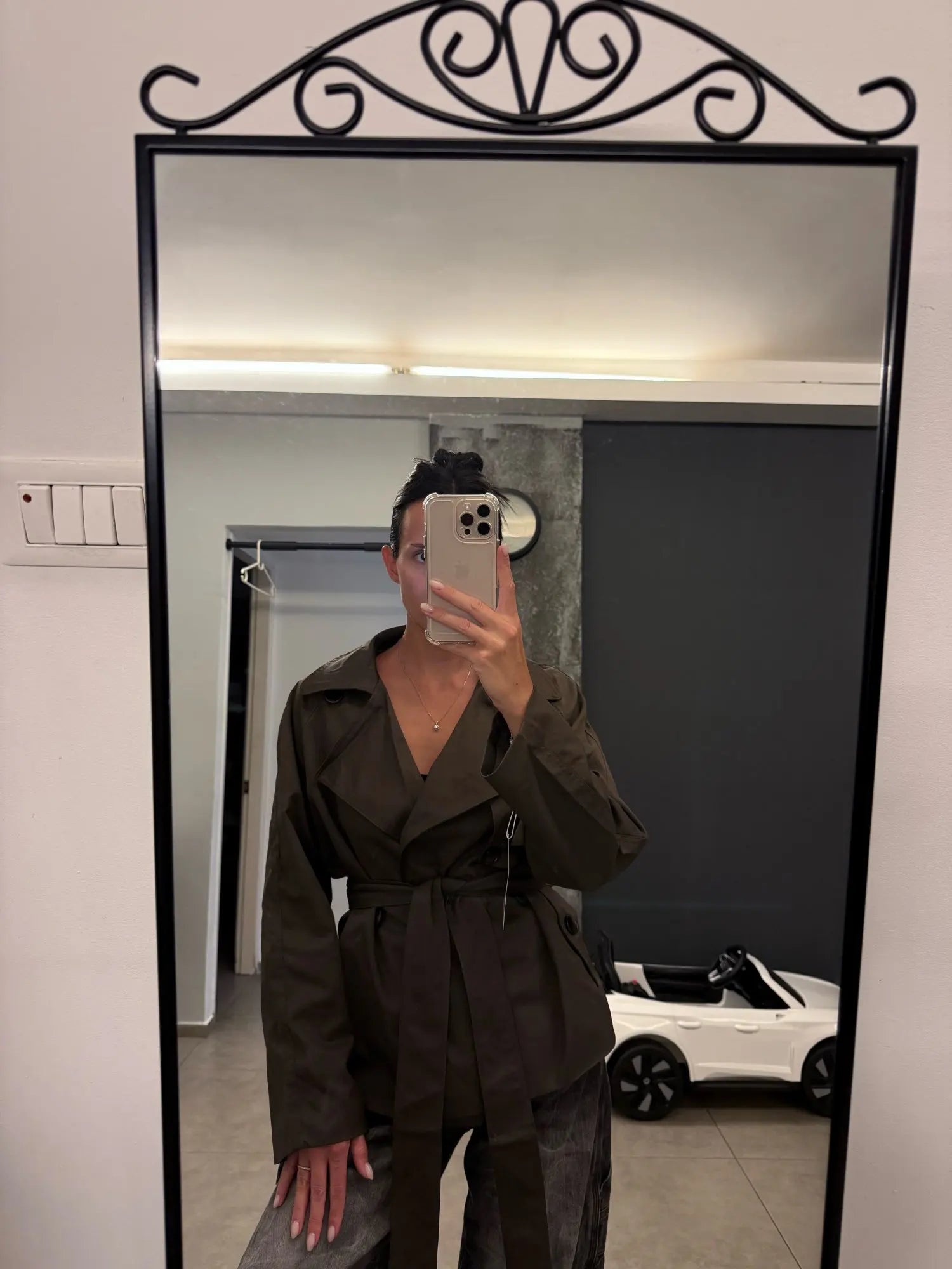 "This coat is absolutely gorgeous! The fabric is excellent, fully lined, with beautiful gold buttons and real pockets. I’m 1.63 m and 57 kg, got size L, and it fits perfectly. I’m in love with it, highly recommend!"