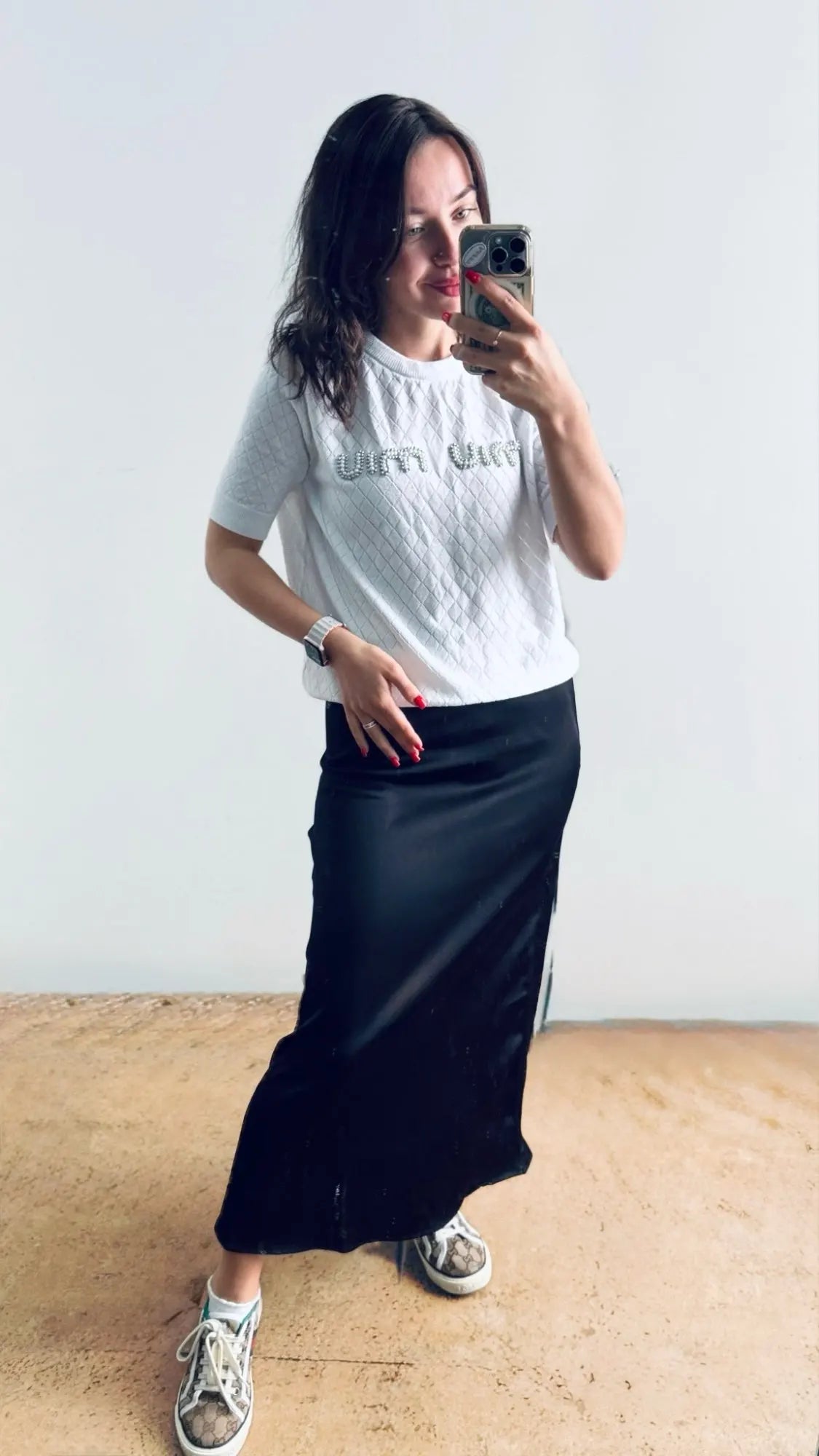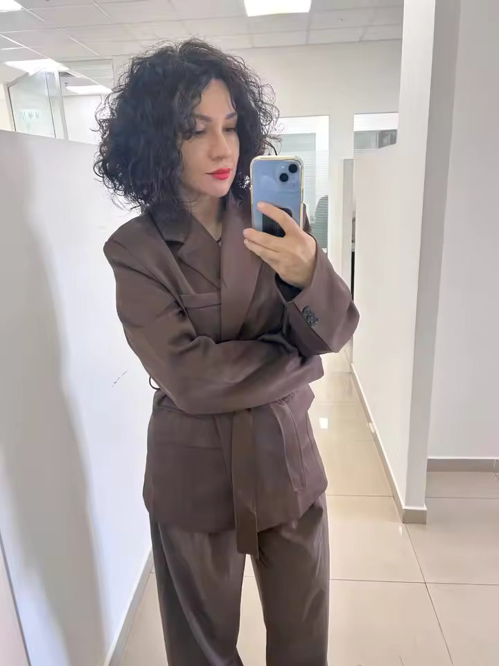 "Lovely, elegant set for spring and autumn not too thick, just right! Sizing is great. My bust is 85cm and my waist 60cm, as shown in the pics."